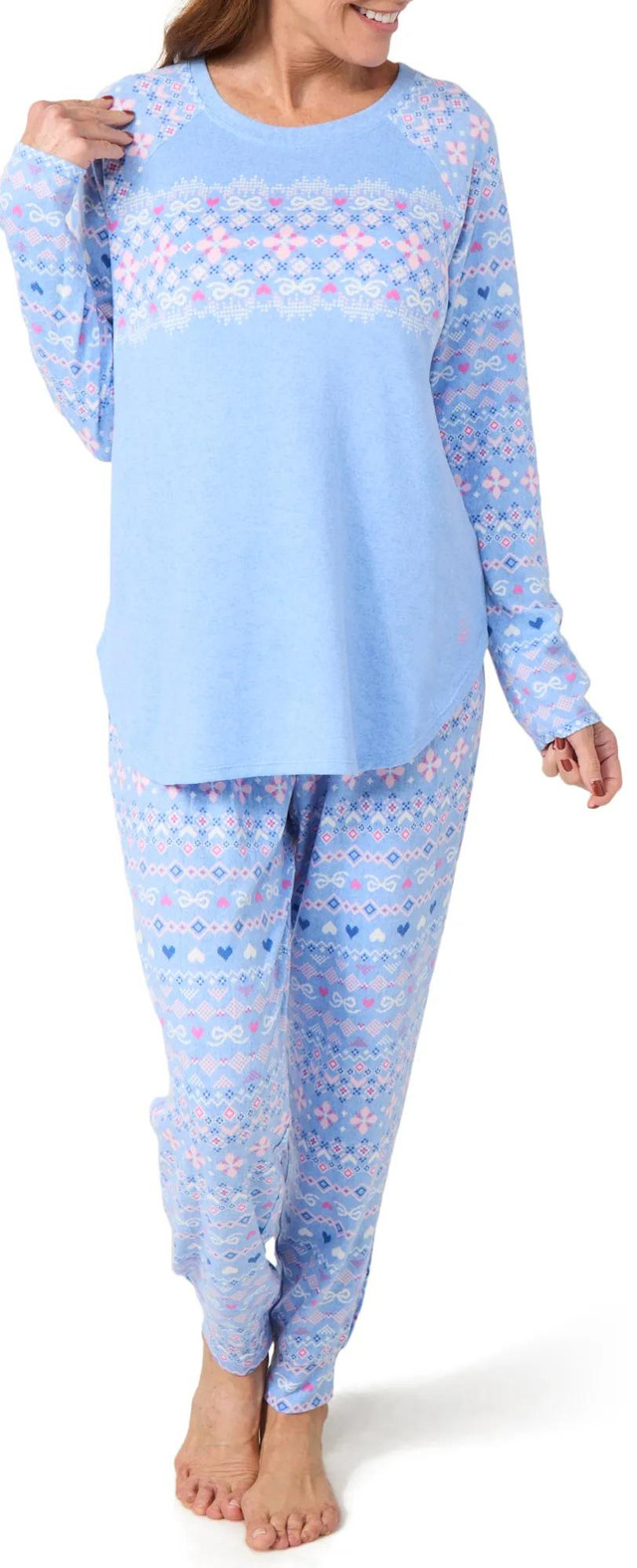 Cuddl Duds Womens 2 Pc Long Sleeve Fairisle Pajama Set