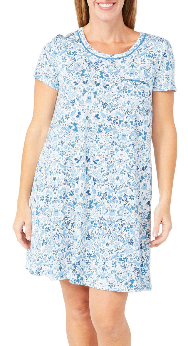 Drift into comfort with the Women's Short Sleeve Woodland Floral Sleep Shirt. Featuring a charming woodland-inspired print, short sleeves, a round neckline, and a chest slip pocket, it is the perfect blend of cozy and cute for restful nights and relaxed mornings. Fabrication 57% cotton, 38% modal, 5% spandex