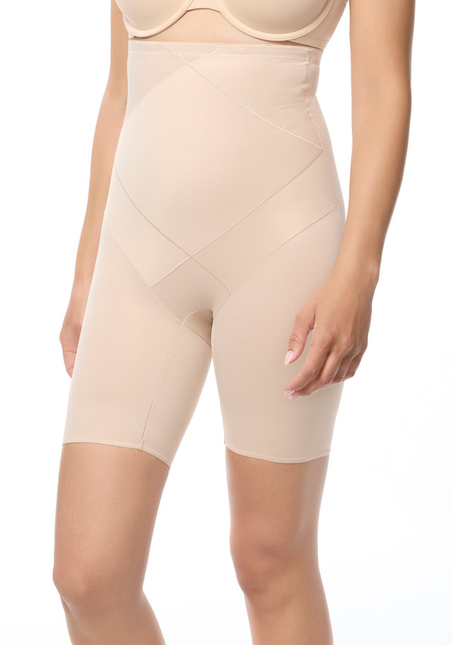 his tummy control body shaper targets tummy pooch in a most effective way. The combination of crisscross seaming spanning the upper and lower abdomen, front double panels, and extra firm control fabrication will lift your tummy, giving you an instant tuck and improving the way you feel and look in your favorite clothes. Choose this high-waisted tummy control thigh slimmer to transform your midriff, waist, tummy, hips, and thighs. Body:75% Nylon, 2% Spandex. Mesh:68% Nylon, 32% Spandex.