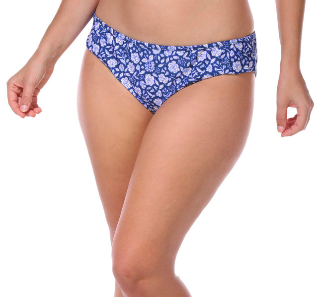 Turn heads at the beach or pool in this women's floral bikini top, featuring a vibrant blue and purple floral print. Designed for both comfort and style, it offers moderate support with a flattering cut that complements a variety of body types. Perfectly pairs with matching bikini bottoms for a coordinated swimwear look. Ideal for tropical getaways or sunny weekends by the water.