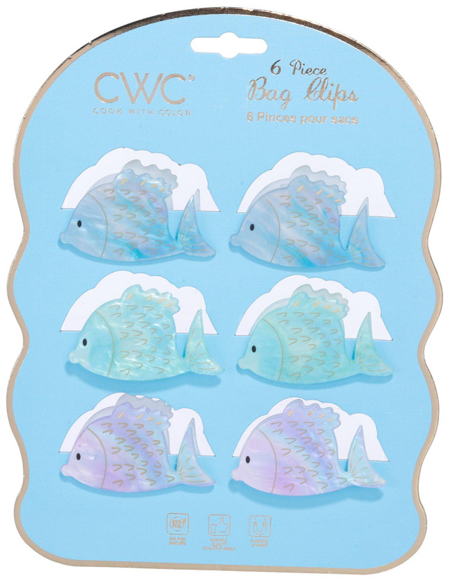 Add a splash of ocean-inspired charm to your kitchen with this 6-pack of Fish Bag Clips! Made of durable acrylic, each clip features a fun fish shape. Perfect for sealing snack bags and adding a playful, aquatic touch to your pantry or fridge.