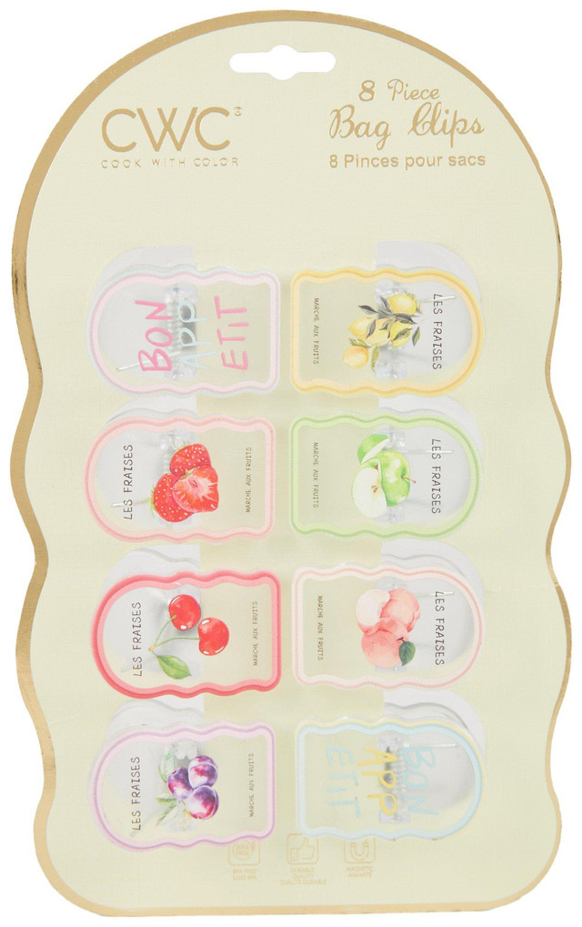 Add a charming touch to your kitchen with this 8-pack of Fruits Magnetic Chip Clips. Each rectangle-shaped clip features wavy edges, magnetic backing for fridge storage, and four unique fruit designs. Perfect for sealing snack bags while bringing a whimsical, decorative flair to your pantry or refrigerator.