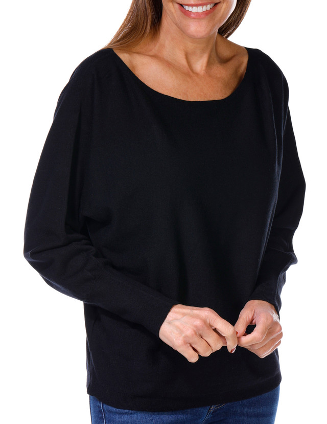 Perfect for a polished look, the Womens Long Sleeve Yummy Yarn Boat Neck Sweater Top features a lightweight knit with a soft feel and elegant boat neckline. A versatile choice ideal for the office or layering. Fabrication is 50% rayon 30% polyester 20% nylon. Length measures approximately 26 in.