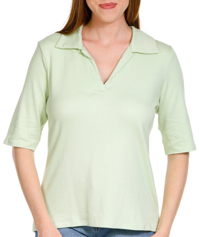 Introducing our Women's Ribbed Johnny Collar Short Sleeve Top, crafted from a blend of rayon and spandex for a comfortable and stretchy fit. This top features a stylish solid color and a chic Johnny collar, making it a versatile and fashionable addition to your wardrobe. Perfect for any casual or semi-formal occasion, this top combines elegance and comfort effortlessly.