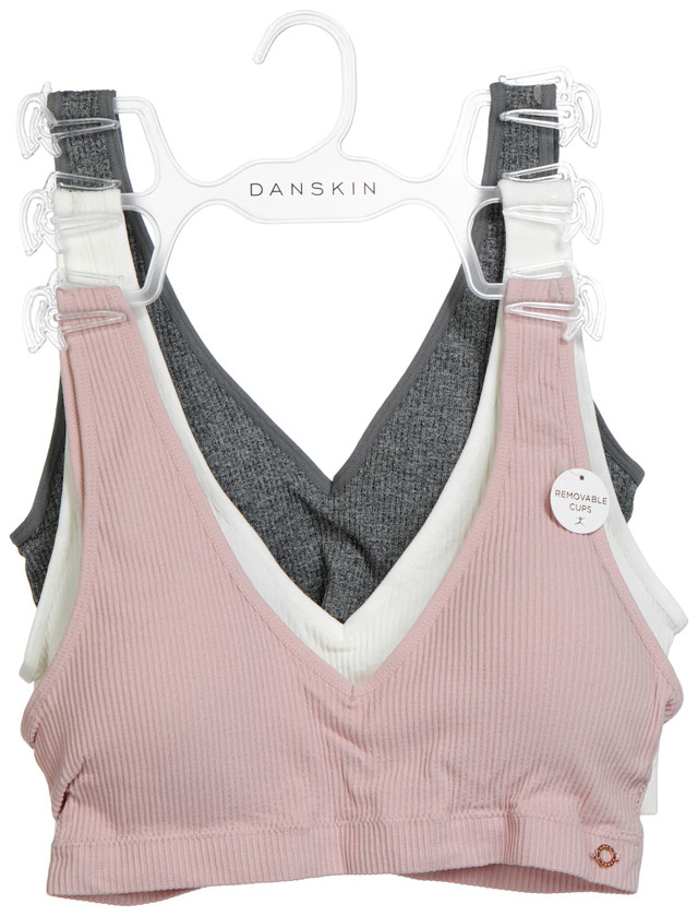 Enjoy all-day comfort with this Women's 3-Pack Seamless Deep V Bralettes. Featuring three assorted colors, a smooth seamless design and removable cups, these bralettes offer the perfect blend of support and versatility for everyday wear.