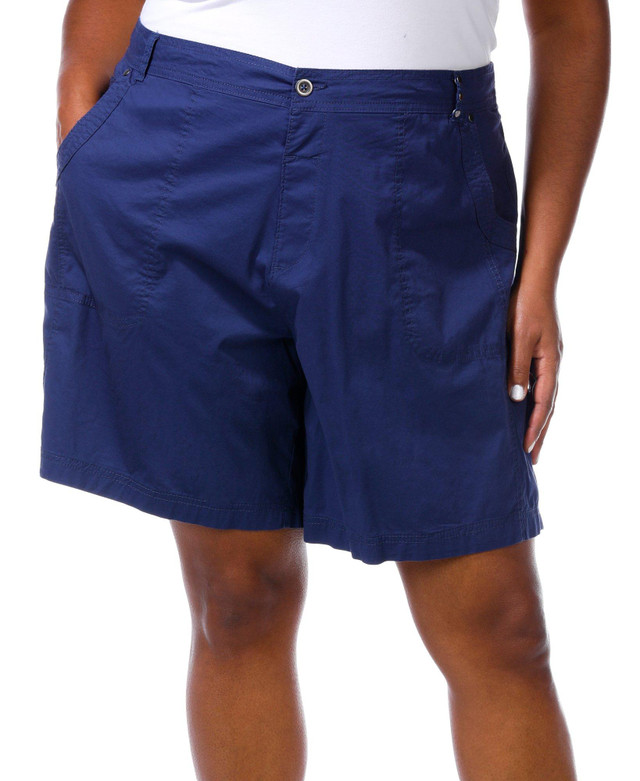 Stay stylish and comfortable in these Plus 7 in Daniela Shorts. Featuring a solid color, pull-on waistband with a single button closure, front and back pockets, and a 7-inch inseam, they offer a perfect blend of ease and everyday polish. Fabrication 98% cotton, 2% spandex.