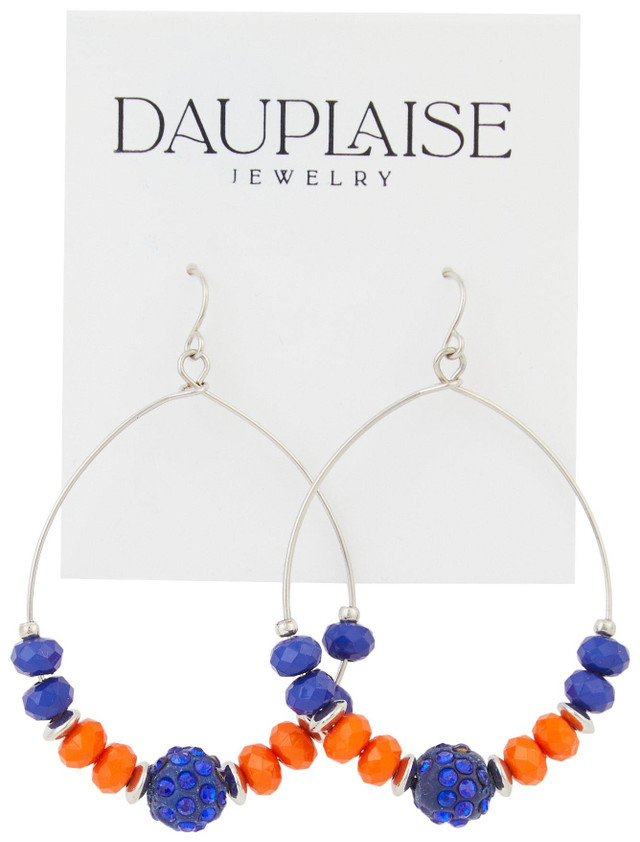 Add a pop of team pride with these UF Gator beaded wire hoop earrings. Designed with a fish hook back for easy wear, each hoop features vibrant blue and orange beads that show off your school spirit in style. Perfect for game day or everyday flair.