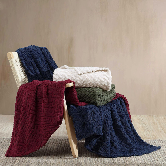 Cozy up with Nautica's Declan sherpa throw. Made using 100% polyester, this cable knit sherpa throw is designed for softness. This throw blanket is heavyweight and provides extra warmth to keep your body cozy whether on the couch or adding that extra layer on your bed weighing 300 GSM. All throw blankets include a Nautica logo patch for that extra design element. They are all easy to care for and machine washable for a long-lasting item. Measures 60 in. x 50 in.