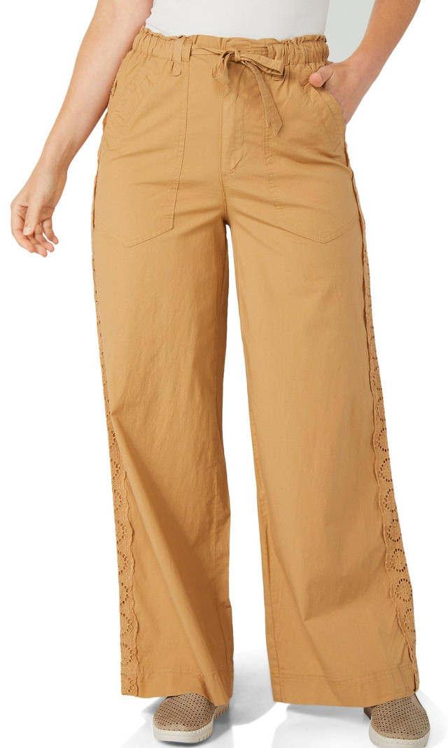 Command attention without sacrificing comfort with these woven Wide Leg pants. They redefine effortless style with their ultra skyrise paper bag waist, waist cinching tie, flowy silhouette, and V-shaped back yoke.
