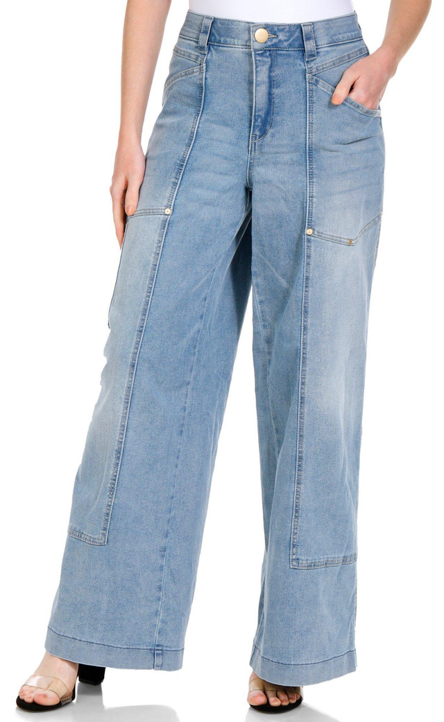 Elevate your casual wardrobe with our Women's 32 in Ab-Solution Wide Leg Utility Jeans. Made from a durable blend of cotton, polyester, and spandex, these jeans offer both comfort and flexibility. Featuring front pockets, back pockets, and cargo/utility pockets, they provide ample storage for your essentials. The stylish wide leg fit and secure button zip fly closure add a modern touch, making these jeans a versatile and chic addition to any outfit.