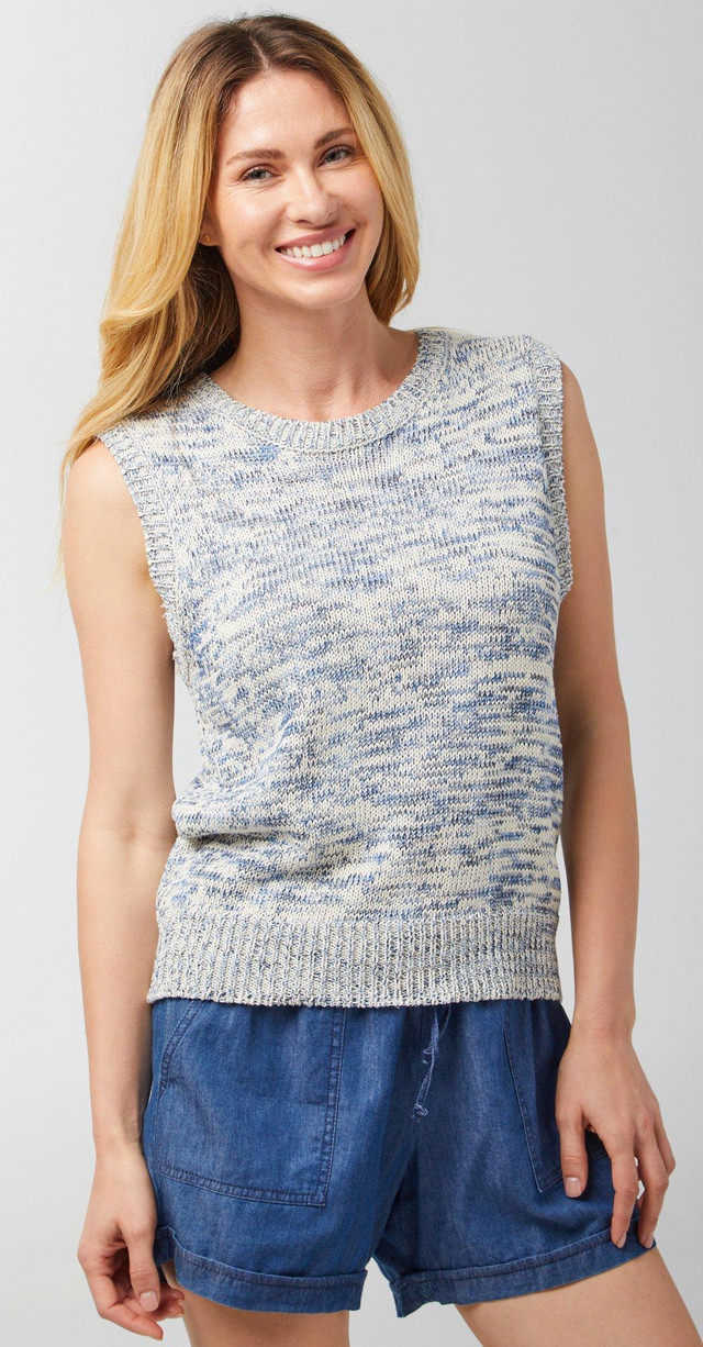 Introducing our Women's Space Dye Sweater Vest, crafted from a blend of cotton, polyester, and nylon. This stylish vest features a unique space dye pattern and a 24-inch length, making it a perfect layering piece for any season. With its modern design and comfortable fit, this sweater vest adds a touch of sophistication to your wardrobe, ideal for both casual and dressy occasions. Fabrication is 54% Cotton, 28% polyester, 18% Nylon.