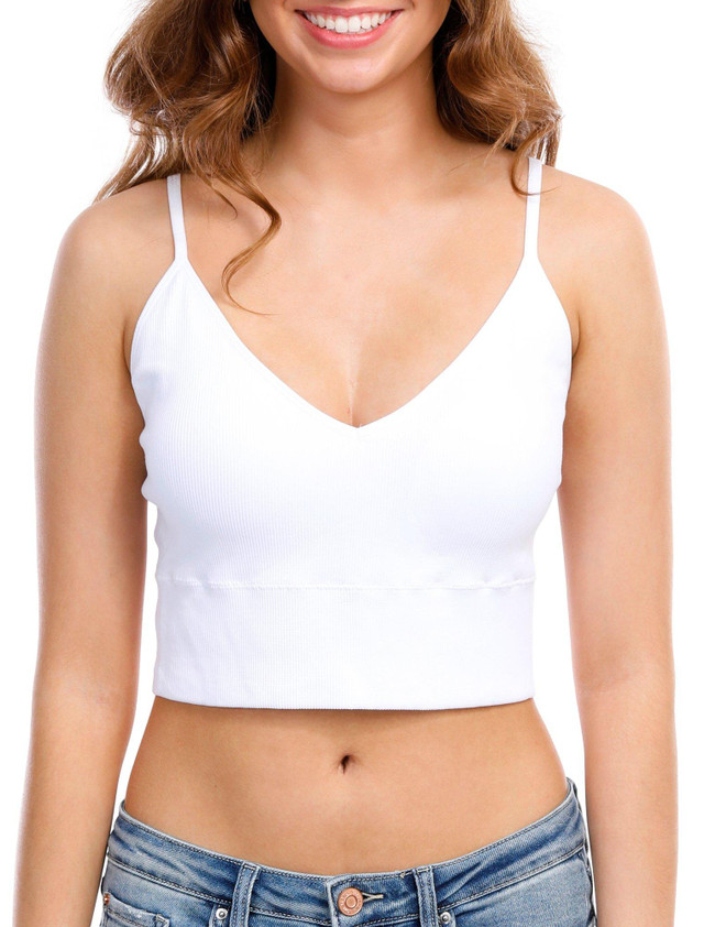 Introducing this Seamless V-Neck Cropped Cami, a must-have for your wardrobe essentials. This cami features a flattering V-neckline and ribbed fabric, providing a comfortable and stylish fit. The seamless design ensures a smooth silhouette, while the solid color makes it versatile for any outfit. Fabrication 97% nylon, 3% spandex.
