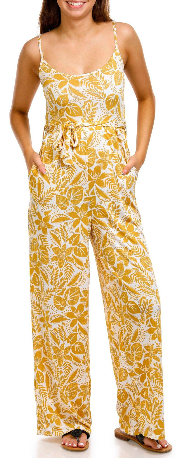 The Juniors Twist Tie Floral Jumpsuit, crafted from a blend of polyester and spandex, features a stylish floral design. With adjustable straps, a belted waistband, and a 50-inch length, this jumpsuit offers a perfect combination of comfort and elegance, making it ideal for any occasion.