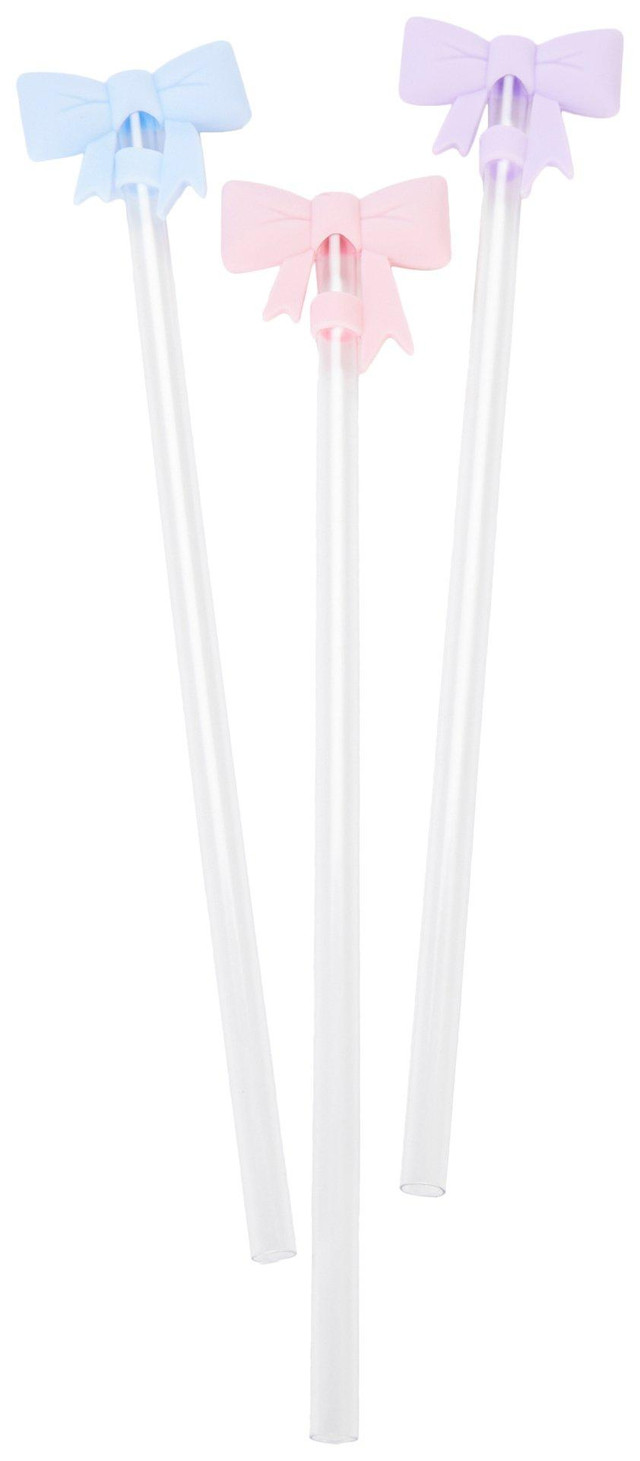 Enhance drink time with this 3 Pc Bow Straw Toppers with Straws, featuring clear reusable straws paired with three pastel-colored bow toppers. Designed for charm and reusability. Ideal for parties, celebrations, and everyday beverages.