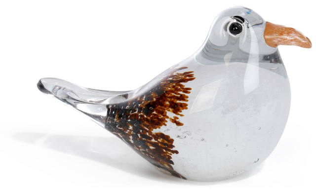 Add a coastal touch to any shelf or tabletop with the Glass Bird Figurine featuring a clear and white interior, painted brown accents, and a bright orange beak. Designed to resemble a shorebird with delicate handcrafted detail. Fabrication is 100% glass. Measures approximately 5 in x 2.5 in x 3 in.