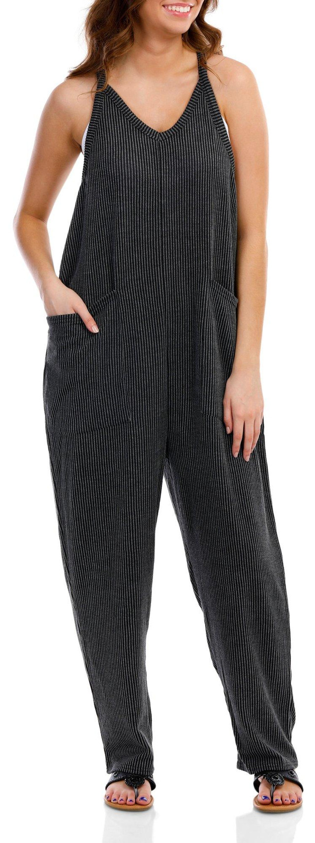 Introducing the Juniors Ribbed Slouch Jumpsuit, crafted from a blend of polyester, rayon, and spandex for a soft and comfortable feel. This jumpsuit features a stylish solid ribbed exterior, a sleeveless design, and a flattering v-neckline. With convenient side seam pockets, it's perfect for both casual and chic looks. Embrace effortless style and comfort with this versatile piece!