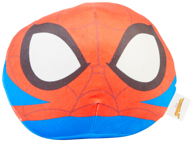 This Spiderman kids travel cloud pillow is designed for comfort and fun. Super soft and featuring Spidermans head, it makes travel cozier and adds a playful touch to naps and adventures. Measures approximately 12 in. Shell fabrication is 94% polyester and 6% spandex. Fill fabrication is 100% fabrication.