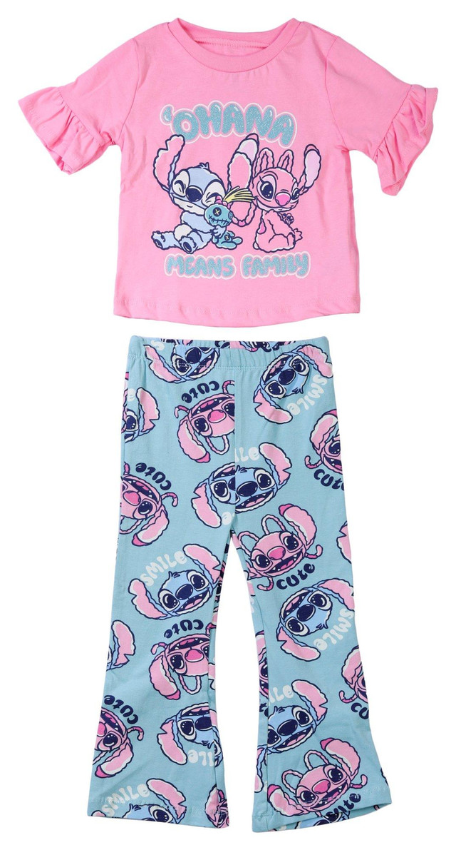 Disney Stitch Girls 2 Pc Short Sleeve Flare Legging Set