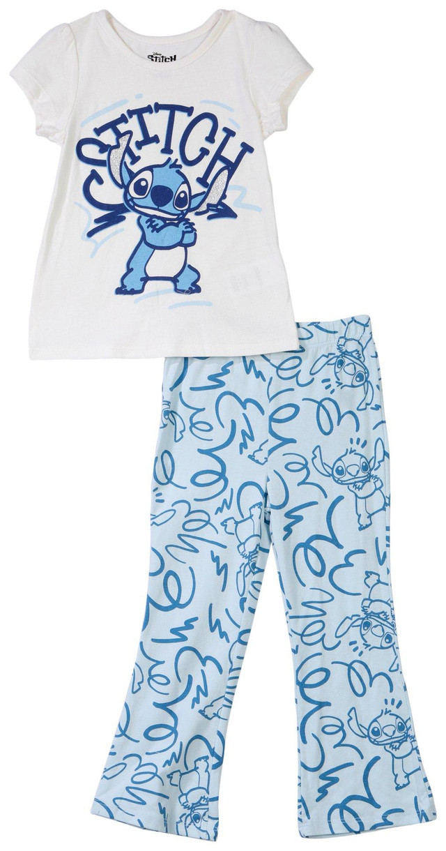 This 2 piece girls set includes a short sleeve top and matching pants featuring Stitch, bringing playful energy to her everyday style. Soft and comfy for all day wear, this fun outfit is perfect for fans of the lovable character and ready for school, play, or lounging.