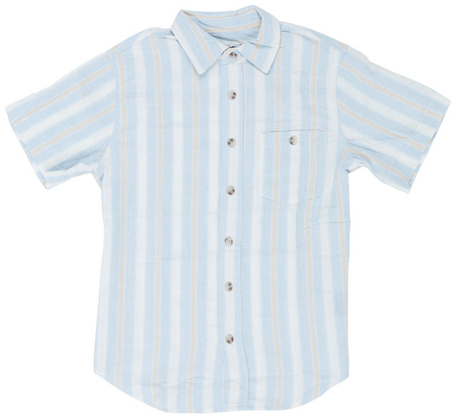Add a touch of sophistication to your wardrobe with this Short Sleeve Shirt, featuring a buttoned front for a classic look. The striped fabric offers a unique visual appeal, while the chest pocket provides a practical and stylish detail.