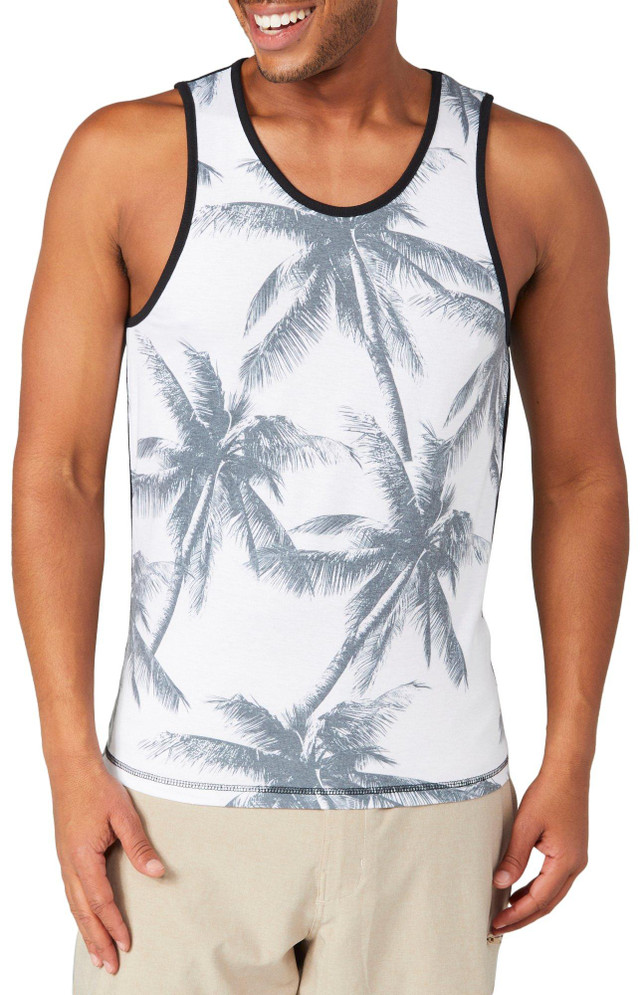 Stay cool and stylish with our Men's Palm Tree Tank Top. Made from a blend of cotton and polyester, this tank features a vibrant palm tree print, a comfortable u-neckline, and a sleeveless design. Perfect for warm weather and casual outings.