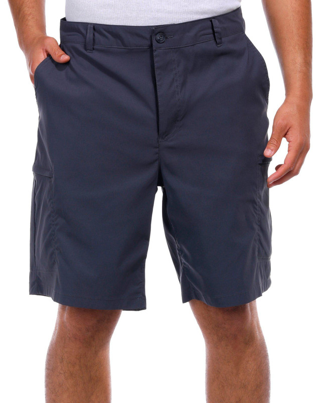 Introducing the Men's Norton Shorts, crafted from a blend of nylon and spandex for durability and flexibility. These stylish shorts feature a solid color design, a button-fly zip closure, cargo pockets, and practical side seam pockets along with one back pocket. The expandable waist ensures a comfortable fit, while the 9.5-inch inseam offers a modern, versatile look perfect for both casual and active wear.