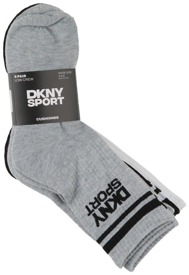 The Women's 6-Pack Low Crew Cushioned Socks are designed for comfort and support. Made from a polyester-spandex blend, these socks offer a soft, stretchy fit that moves with you. The cushioned sole adds extra comfort, making them perfect for everyday wear, sports, or casual activities. Designed for shoe sizes 5-9.5, the low crew cut provides just the right amount of coverage while staying comfortable and durable. A great addition to your sock collection!