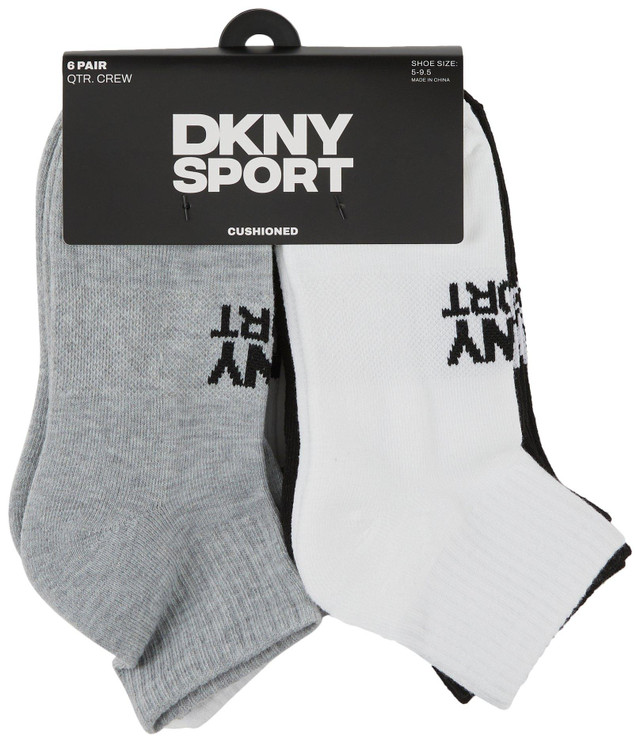 The Women's 6-Pack Quarter Crew Cushioned Socks are designed for comfort and support. Made from a polyester-spandex blend, these socks offer a soft, stretchy fit that moves with you. The cushioned sole provides added comfort, making them perfect for everyday wear, sports, or casual activities. Designed for shoe sizes 5-9.5, the quarter crew style offers extra coverage while staying comfortable and durable. A must-have for your sock collection!