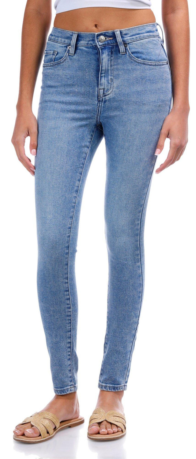 Elevate your style with the Women's Essex High Rise Skinny Jeanscrafted from a soft blend of cotton, rayon, polyester, and spandex for all-day comfort. Featuring a flattering high-rise fit, classic 5-pocket design, and a sleek button-fly zip closure, these jeans hug your curves in all the right places.