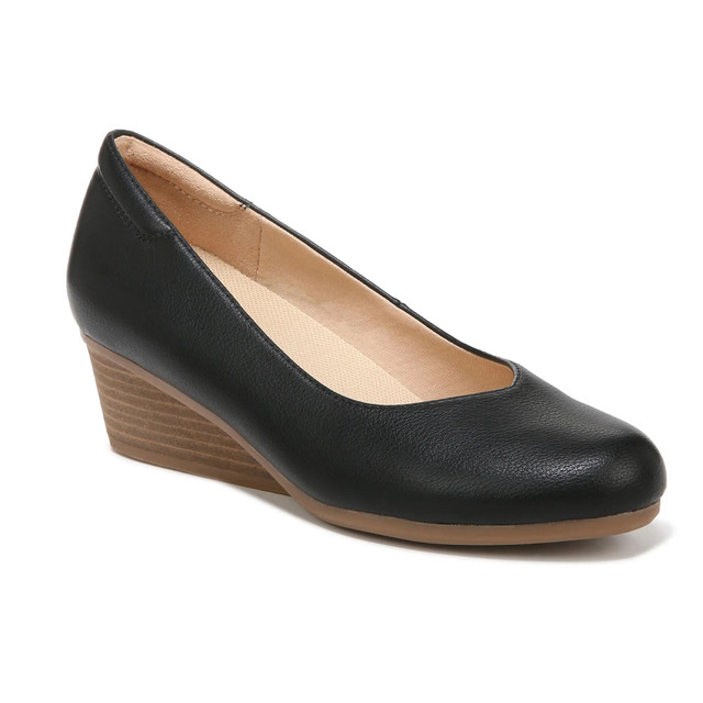 A sleek and flattering wedge perfect for the office (or anywhere). Linings and topcloth made from recycled plastic bottles, recycled toe box and heel counter. ReFiber Microfiber made from recycled plastic bottles. FIT: Slip-on fit for easy on/off. Anti-microbial, anti-odor Susterra® foam insole crafted from 11% bio-based materials with soft and lightweight cushioning, built-in arch support, and a molded heel cup.