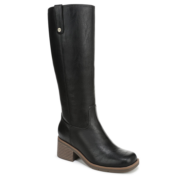 Dr. Scholls Joplin Knee High Boots deliver elevated style with signature comfort. Crafted with low-chemical faux leather and recycled materials, they feature BLOOM® foam insoles for cushioned support. A sleek inside zipper ensures easy wear, while western-inspired stitching and a stacked heel add refined detail. Sustainably packaged and designed for all-day movement.