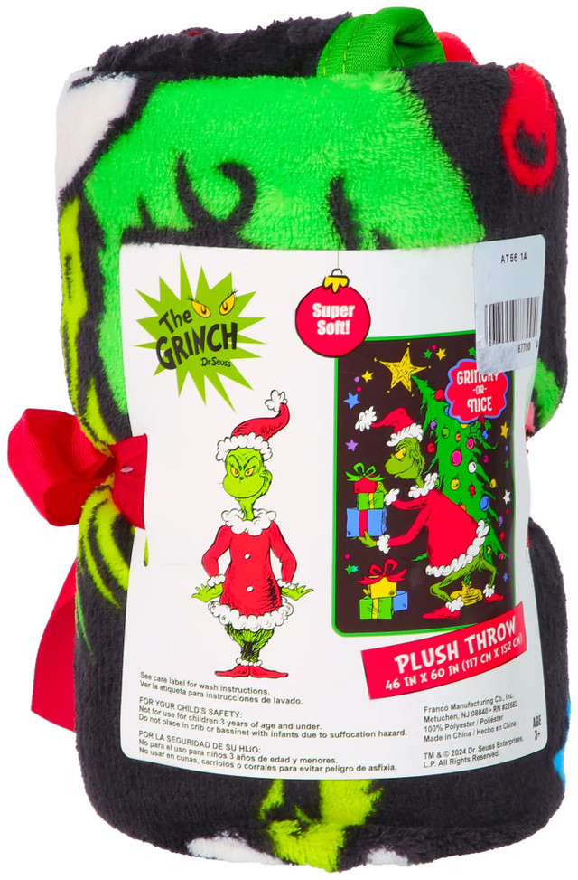 Add a touch of whimsy to your winter nights with this 46x60 plush Grinch throw blanket. Made with ultra-soft fabric, it is perfect for cozying up while enjoying your favorite holiday movies or decorating your space with festive flair.