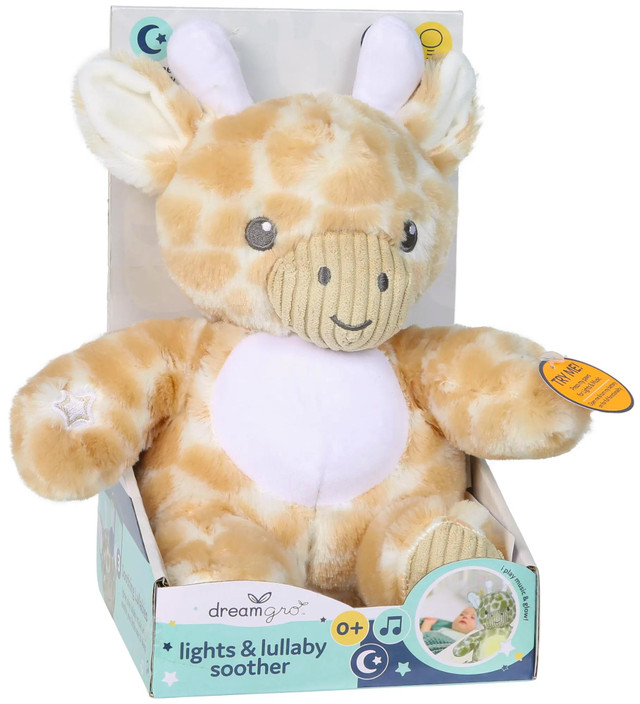 Soothe your little one with the Plush Giraffe Light & Lullaby Soother. This cuddly companion plays gentle melodies and glows softly to create a calming bedtime atmosphere. Designed to comfort and help baby drift off to sleep, it is perfect for naptime, nighttime, or on-the-go relaxation.
