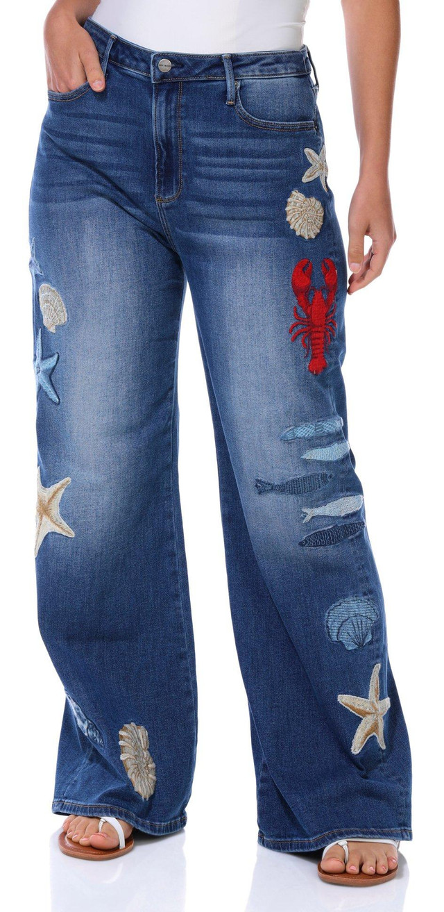 Dive into coastal charm with the Charlee x Seaside Social Jeans, crafted from classic denim and adorned with delicate embroidered ocean accents. These jeans blend laid back style with whimsical detail, perfect for bringing a splash of seaside spirit to your everyday look. Fabrication is 93% cotton, 5% polyester, 2% spandex.