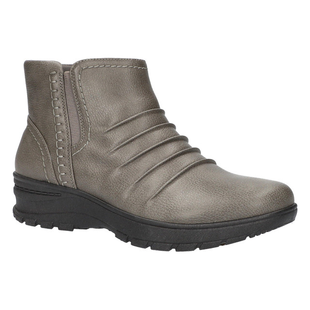 The Autumn from Easy Works by Easy Street is a stylish ruched comfort bootie with stitch detailing that will meet all your fashion needs. Enhanced with the Easy Motion Pro Comfort system, the removable antimicrobial contoured insole is designed to provide all-day comfort and support. Featuring stretch-for-fit comfort and an on-trend mini lug non-marking slip-resistant outsole, this style will have you pairing with all your favorite casual outfits.
