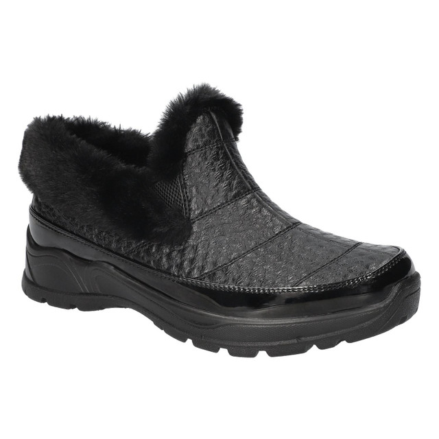Embrace a cozy wintery vibe with the Flurry from Easy Dry by Easy Street. This wintery ankle boot is designed with style and made with contemporary easy-to-care-for materials and an inner shell that provides waterproof protection. Crafted on a lightweight, flexible outsole with deep channels and texture for traction. Enhanced with stretch-for-fit features and an ultra-light removable Easy Dry by Easy Street insole for support and comfort.