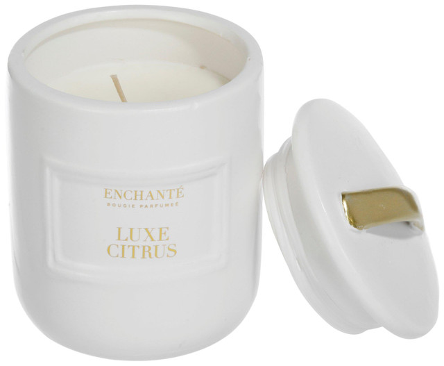 Bright and refreshing, this 11-ounce candle comes in a sleek white ceramic jar with a gold-accented lid for a clean, modern look. Infused with a crisp citrus scent, it fills any space with energizing notes of zesty lemon, juicy orange, and a hint of fresh lime. Perfect for gifting or personal indulgence, this candle creates a vibrant and uplifting ambiance while serving as a stylish décor piece.