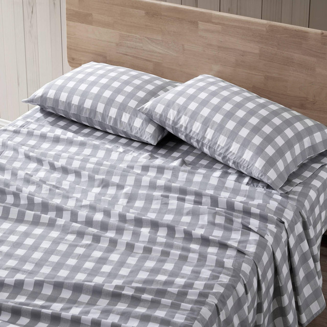 Bring lodge-inspired charm to your bedroom with the Eddie Bauer Lakehouse Plaid Sheet Set. Crafted from crisp, breathable 100% cotton percale, this classic plaid evokes cozy cabin nights and softens with every wash. The fully elasticized fitted sheet stays snug, and OEKO-TEX certified dyes ensure eco-conscious comfort. Machine washable for easy care.