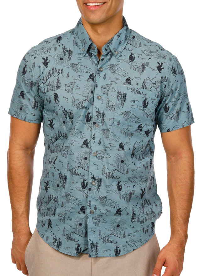 Add a playful twist to your wardrobe with the mens short sleeve Big Foot button-down shirt. Featuring a classic collar, chest slip pocket, and button-down front, this shirt combines comfort with quirky style. Perfect for casual outings and conversation starters.