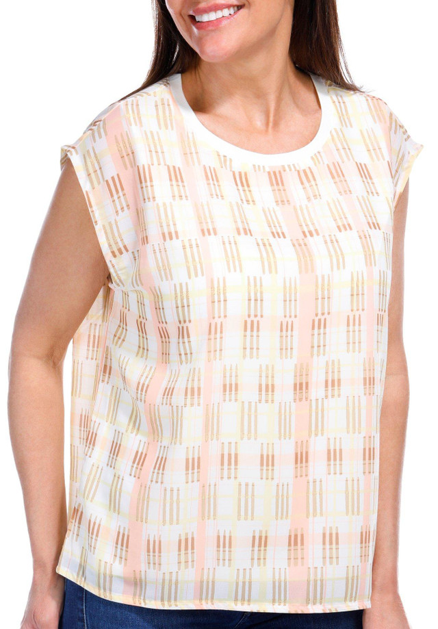 This Short Sleeve Top is a stylish and versatile piece, perfect for any occasion. Featuring a unique crosshatch print, this top adds a touch of modern flair to your wardrobe. The lined design ensures comfort and a smooth fit, making it ideal for both casual and dressy settings. Whether paired with jeans, skirts, or shorts, this top offers a chic and polished look.