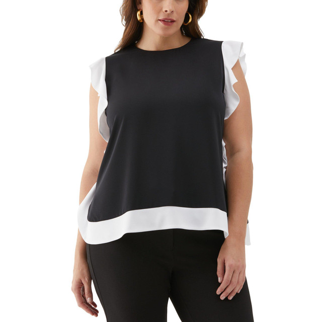 Featuring contrast-colored flounce trim that flutters beautifully as you walk, this ELLA Rafaella blouse will be an elegant addition to both your work and weekend attire. Approx. length: 27.5 in.