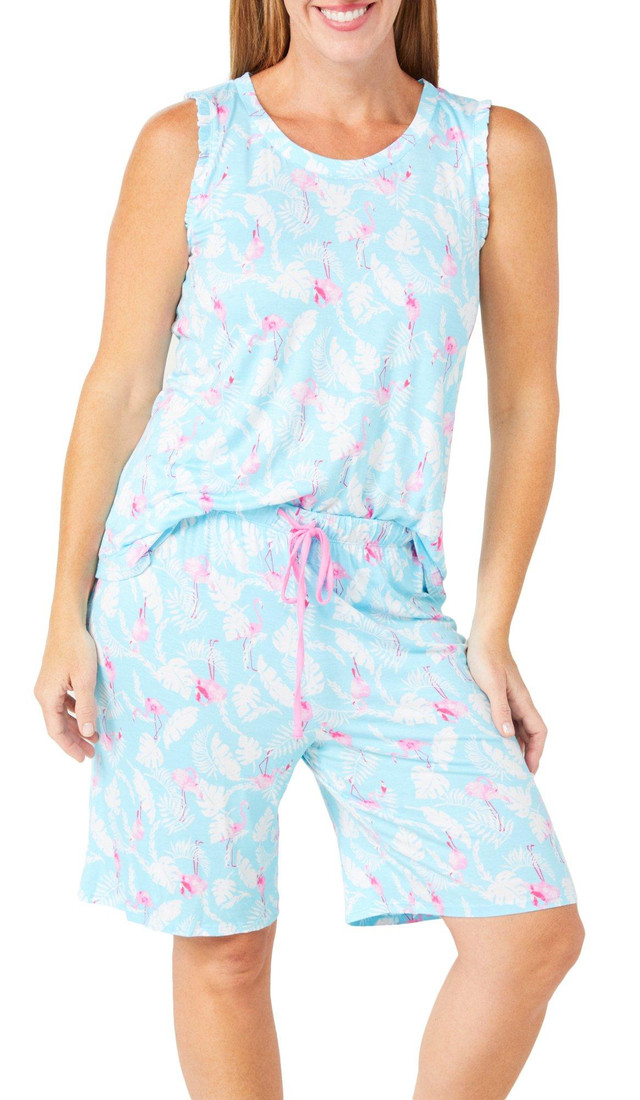 Drift into comfort with this women's 2-piece pajama set, featuring a sleeveless top and matching shorts. Made from ultra-soft fabric, its designed for cozy nights and lazy mornings. The elegant paisley print adds a touch of charm, making this set as stylish as it is comfortable. Fabrication 95% rayon and 5% spandex.