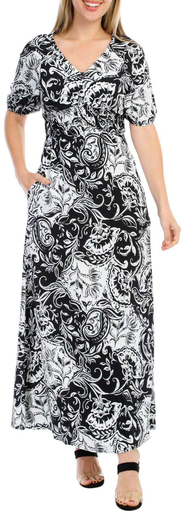 Discover elegance with our Womens Paisley V-Neckline Maxi Dress. Made from 100% polyester, this dress offers a lightweight and comfortable fit. It features short sleeves and a flattering v-neckline, perfect for any occasion. The maxi skirt design and length adds a touch of sophistication and flow, making it an ideal choice for both casual and formal events.