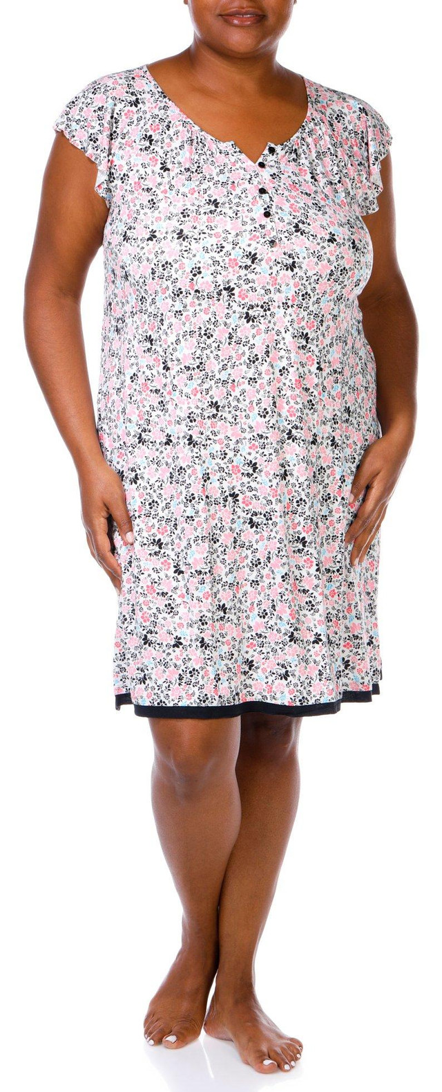 This women's short sleeve chemise, offers a perfect mix of comfort and style. The stylish design adds a touch of elegance, while the V-neckline and button collar provides a flattering look. The short sleeves ensure a relaxed fit, making this chemise ideal for a cozy night's sleep or lounging at home. Embrace both charm and comfort with this delightful chemise! Fabrication is 95% rayon, 5% spandex.