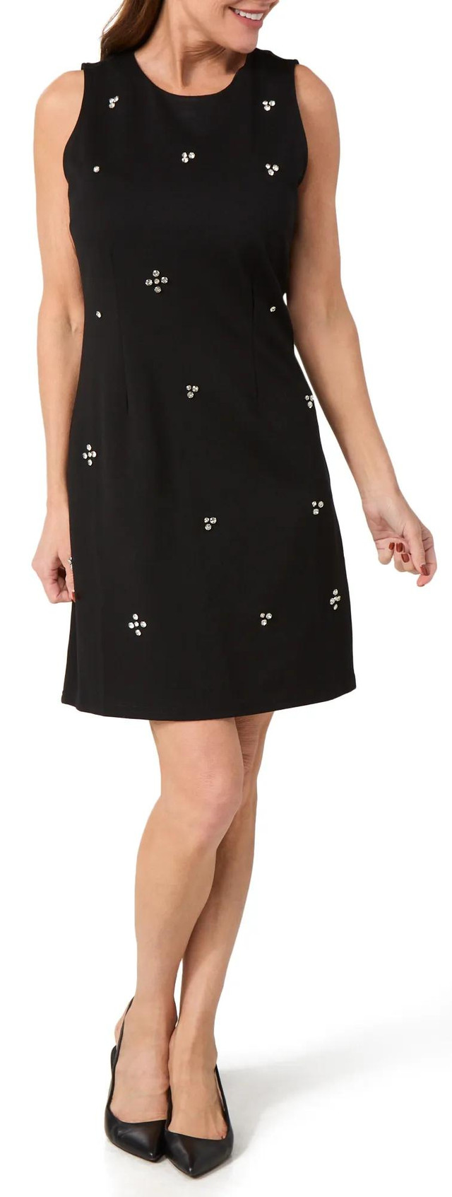 Ellen Tracy Womens Sleeveless Embellished Mini Dress