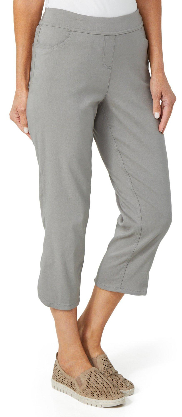 Step into effortless style with these Petite Pull-On Twill Crop Pants! Designed for comfort and flair, they feature a flattering elastic waistband, two handy front pockets, and two chic back pockets. The cropped, slim leg cut adds a modern twist, perfect for dressing up or down. Whether you're running errands or brunching with friends, these pants move with you, and look fabulous doing it. Fabrication 77% rayon, 20% nylon, 3% spandex