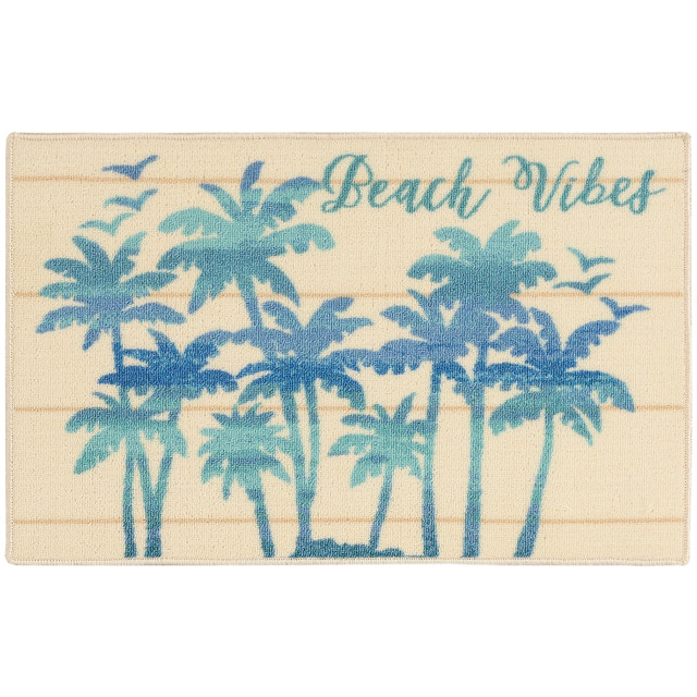 Essential Elements offers rugs perfect to enhance any space in the house. This rug features Beach Vibes Palms background. Measures approximately 17''L x 28''W.