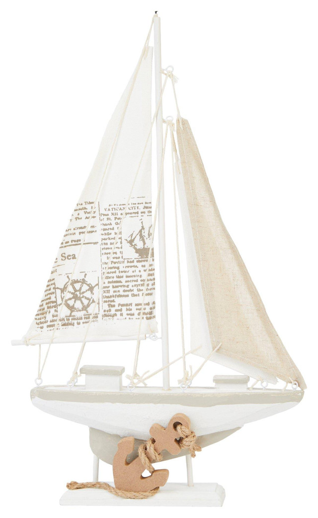 Bring coastal charm to your space with this decorative sailboat accent. Measuring approximately 6.5 in x 3 in x 17 in, it features a classic boat design. Ideal for shelves, mantels, or tabletops, this lightweight piece adds a beachy touch to any room.