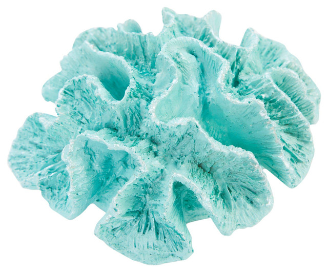 Enhance coastal decor with the 3 in Resin Coral Figurine featuring a detailed teal and grey colored coral mound design. This elegant accent brings a serene oceanic ambiance to living rooms, bathrooms, or office spaces. Its compact size fits easily on shelves or tabletops, adding subtle natural beauty. Ideal as a thoughtful gift for ocean lovers. Wipe clean with a soft cloth to maintain its finish. Measures approximately 3 in x 6 in round.
