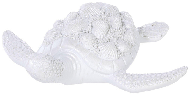 Add a coastal touch to your home with this 7-inch sea turtle figurine. Crafted from resin with a shell-inspired design, it is perfect for shelves, mantels, or tabletops. Its detailed finish and compact size make it a charming accent for beach-themed or nature-inspired décor.